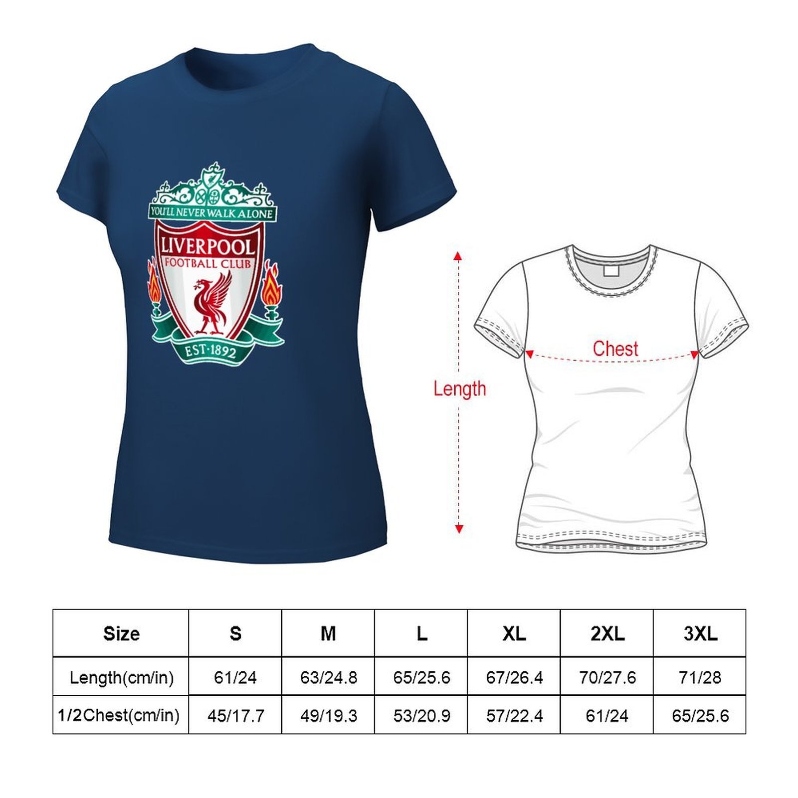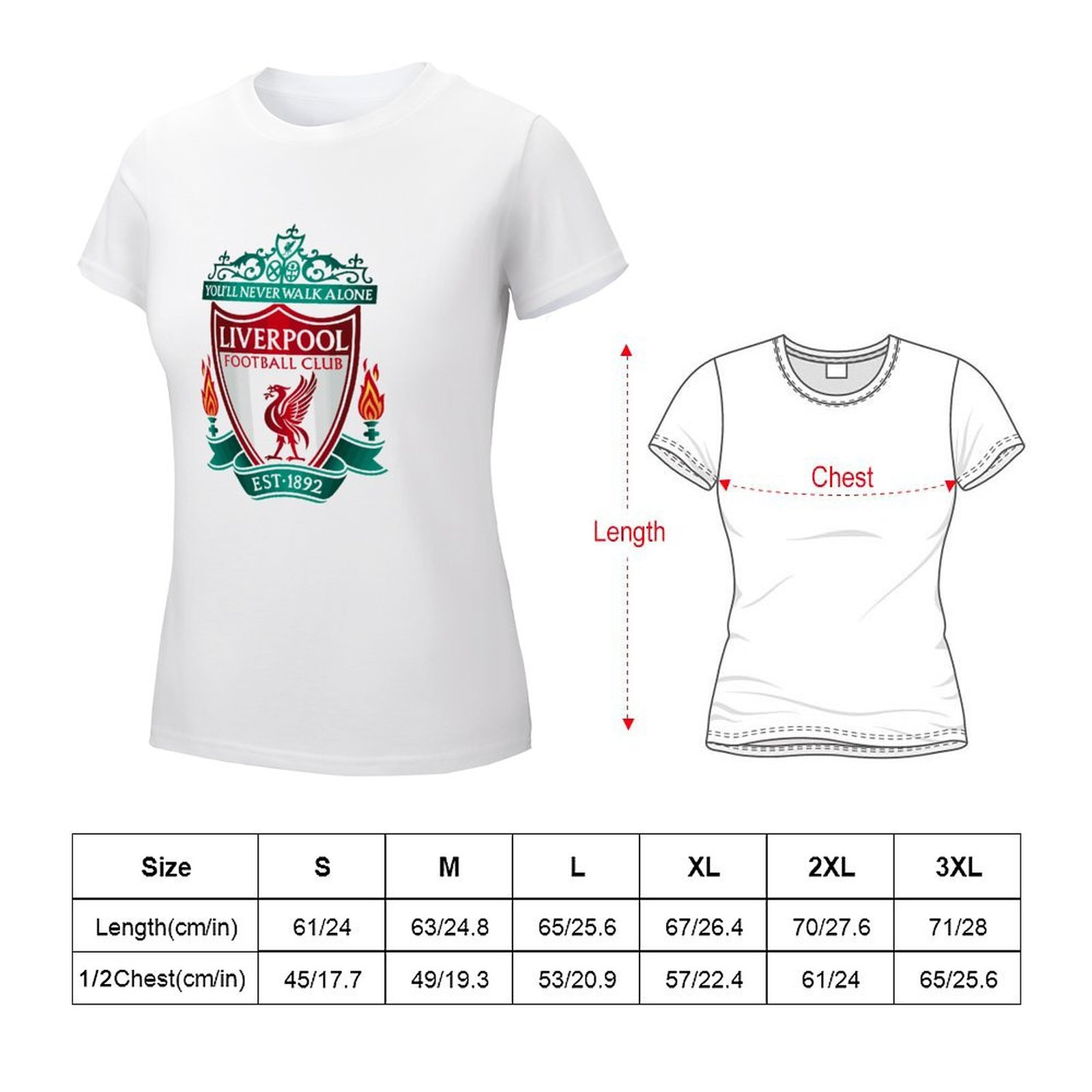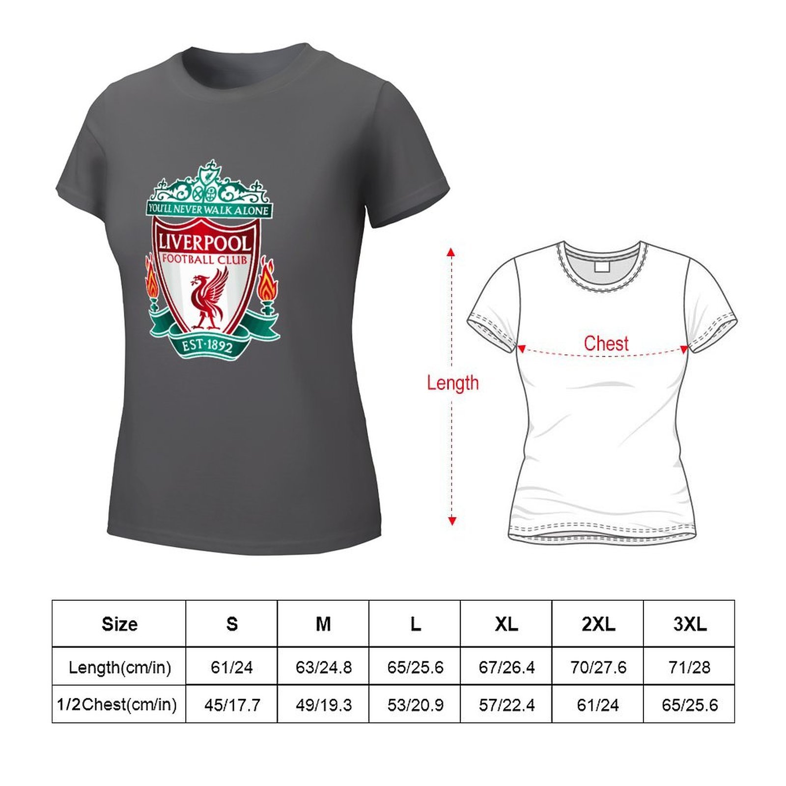 FC Liverpool Damen Kurzarm Rundhals T-Shirt Casual Sommer Tops