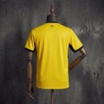 Das goldene Auswärtstrikot strahlt Kraft und Optimismus aus und zieht alle Blicke auf sich. Ein durchgehendes Muster aus von Kente-Stoffen inspirierten Formen verleiht ihm kulturelle Tiefe, während rote Akzente und der allgegenwärtige schwarze Stern eine Verbindung zum ghanaischen Erbe herstellen.