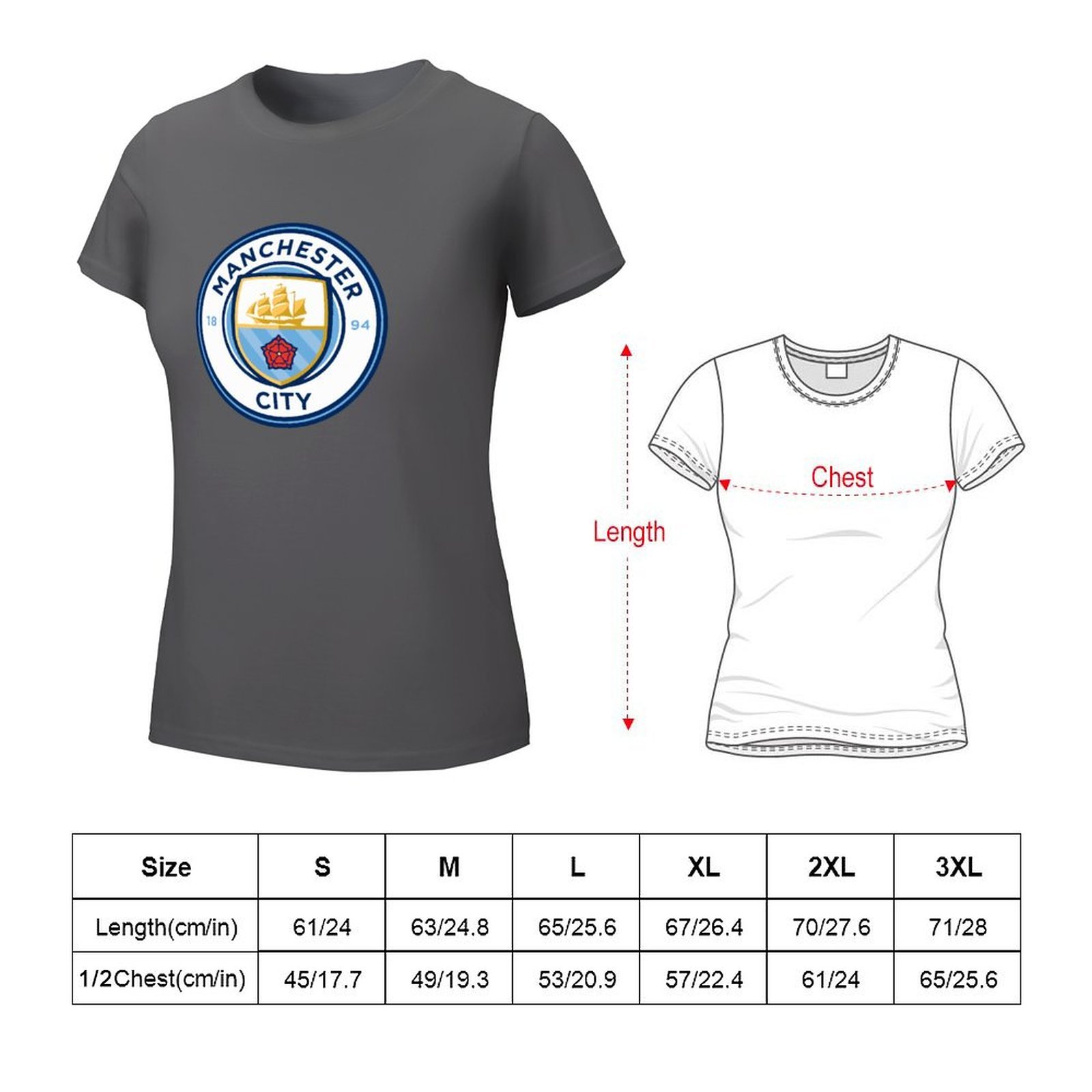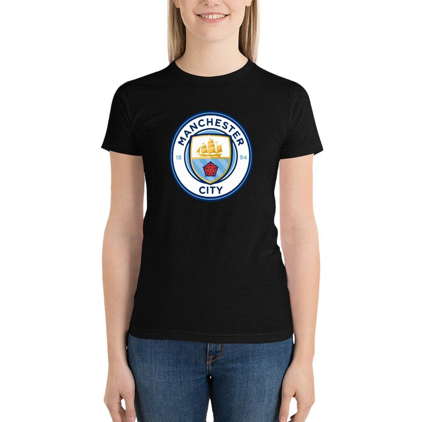 Manchester City Damen Kurzarm Rundhals T-Shirt Casual Sommer Tops
