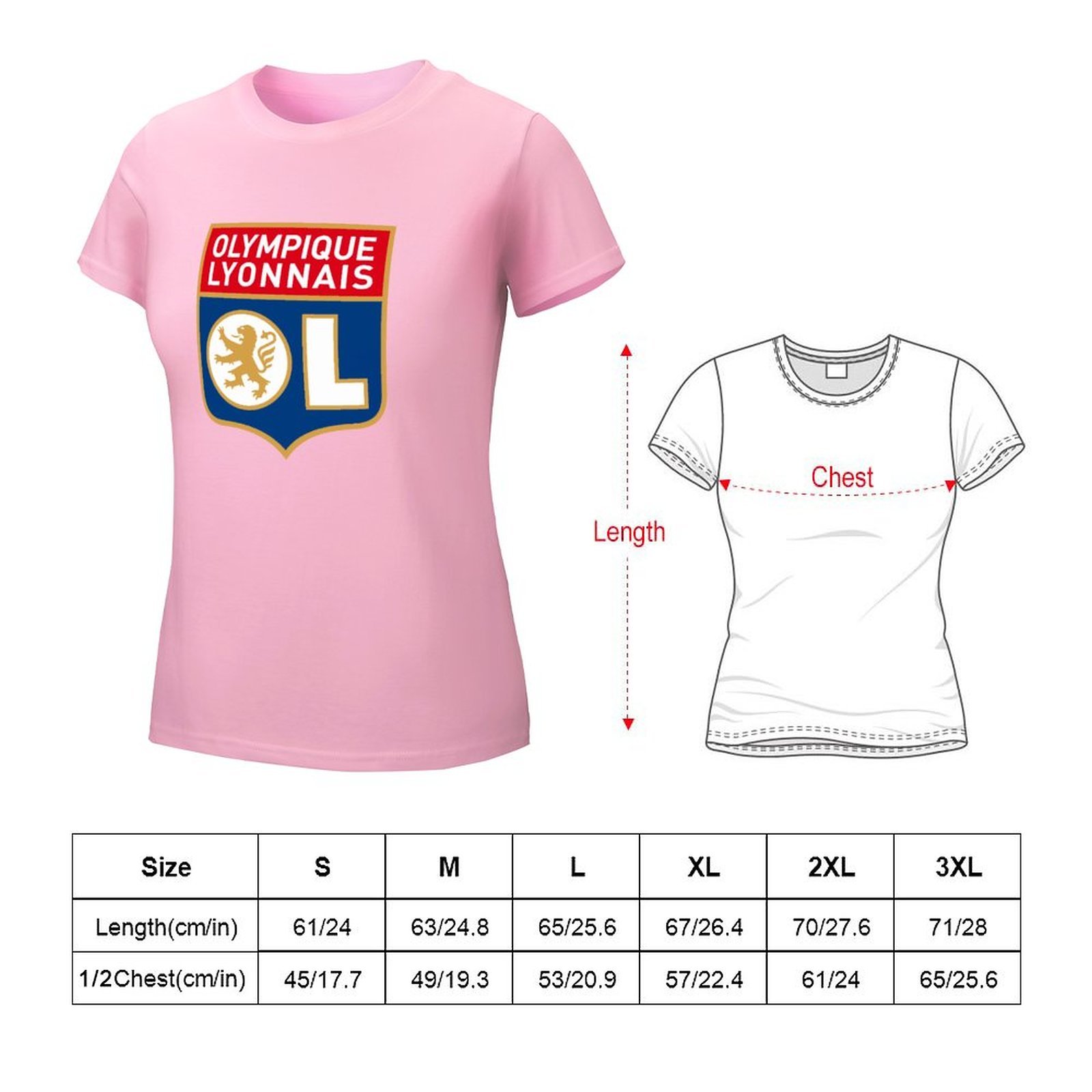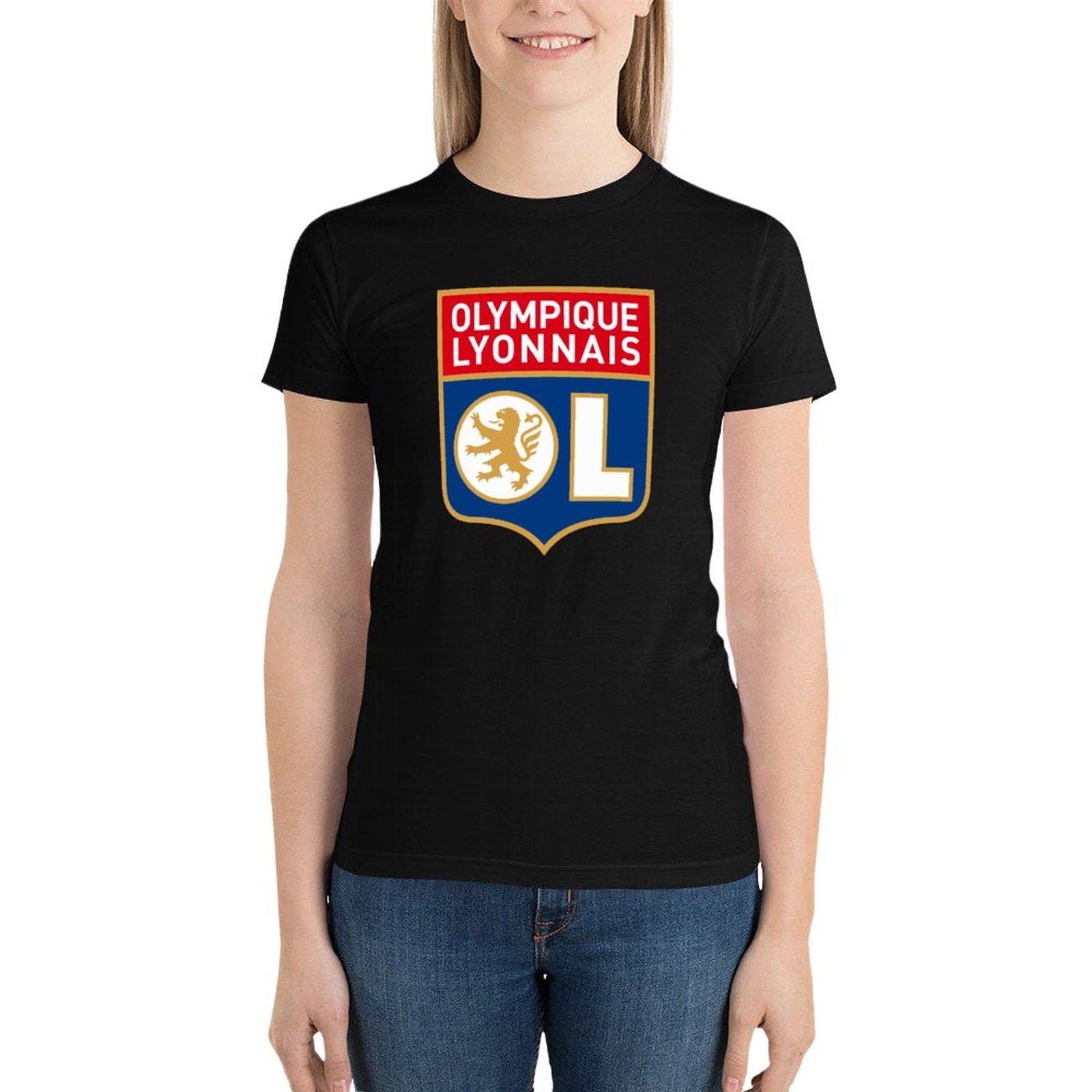 Olympique Lyonnais Damen Kurzarm Rundhals T-Shirt Casual Sommer Tops