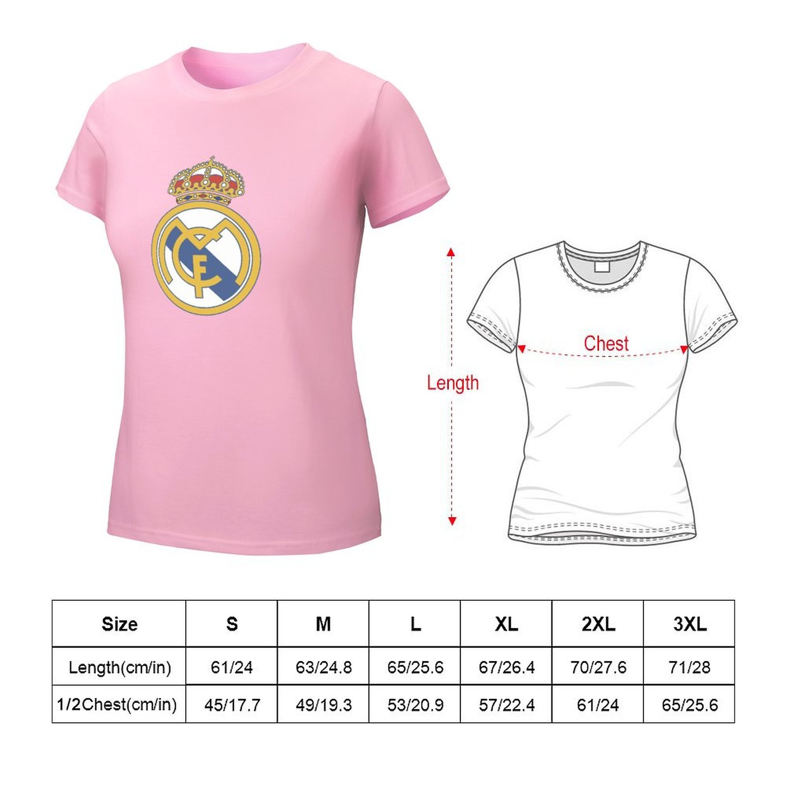 Real Madrid Damen Kurzarm Rundhals T-Shirt Casual Sommer Tops