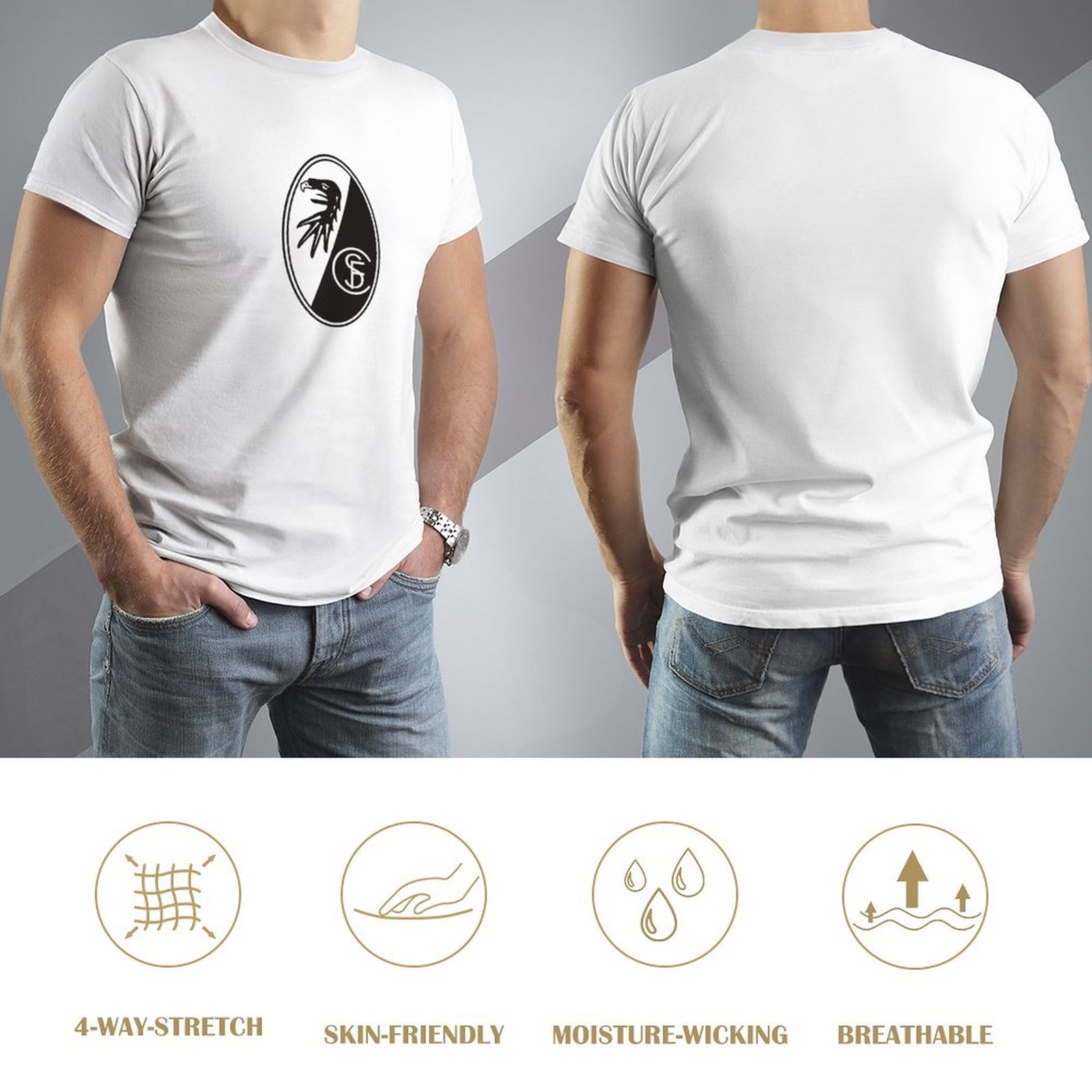 SC Freiburg Core Stretch Slim Cneck Gildan Tee T-Shirt Herren