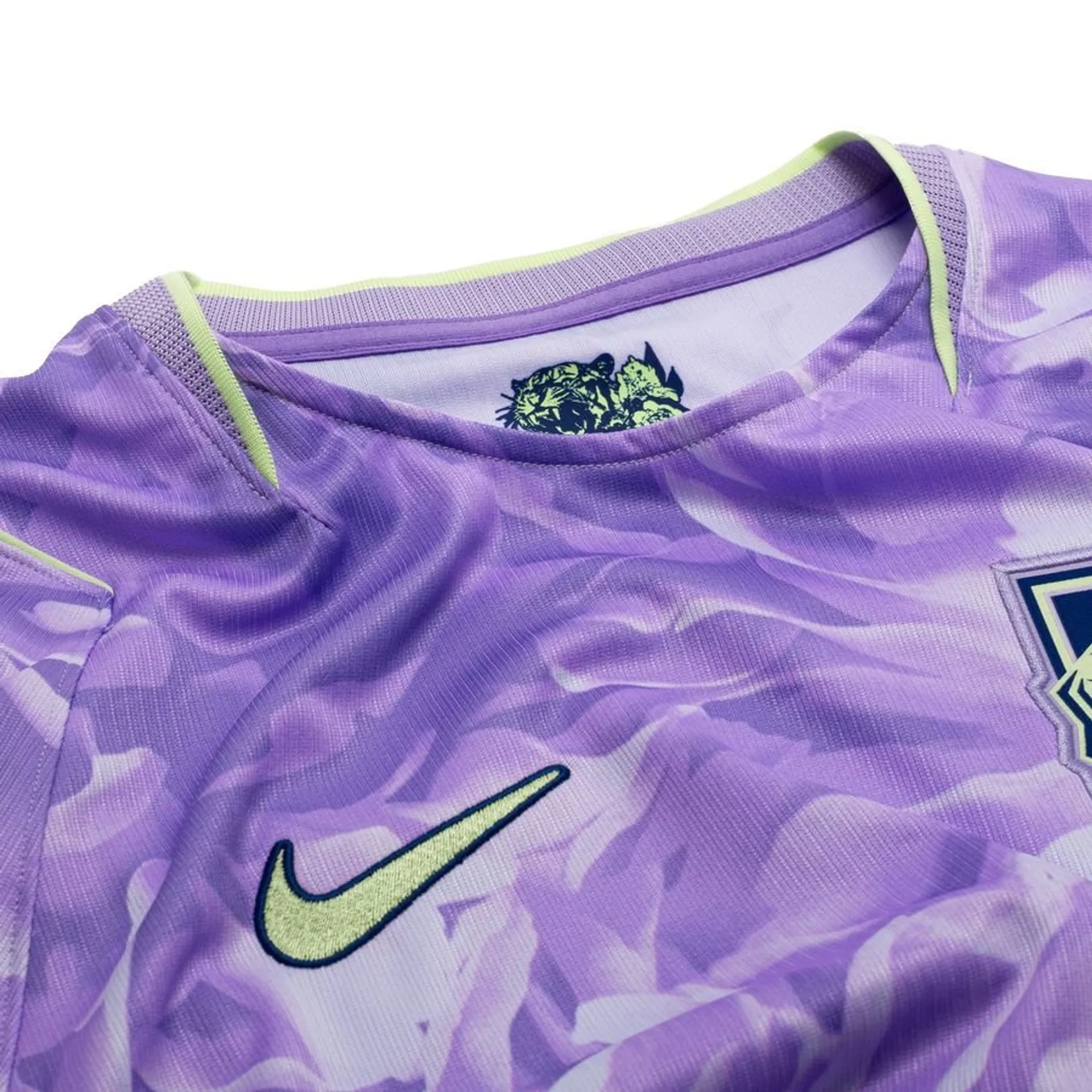 Das Auswärtstrikot Südkoreas setzt das Thema der Überraschungsangriffe mit einem floralen Design fort, das die Leidenschaft und Dynamik der Nation widerspiegelt. Auf einem kräftigen violetten Grund fängt die Grafik Bewegung, Emotion und Energie ein und vereint Eleganz mit Kraft. Das Trikot bietet eine ausdrucksstarke, selbstbewusste alternative Identität, die den Nationalstolz unterstreicht und gleichzeitig die Wettbewerbsfähigkeit stärkt.